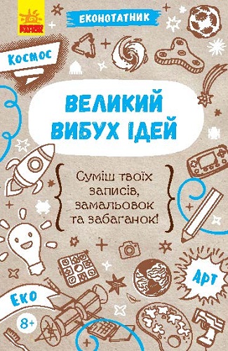 Нотатник-помічник в екостилі, який спеціально створений для записів раптових ідей та зберігання таємниць. А ще у еконотатнику зібрані цікавинки про космос, креативні завдання та багато гумору. Він є чудовим мотиватором покращувати свої знання з кожним днем.