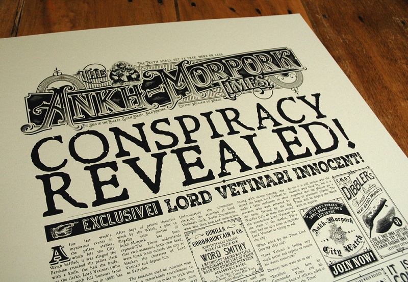 У новому місці обов’язково погортайте місцеву пресу. Ось погляньте: група не надто презентабельних чоловіків продає «Анк-Морпоркський Час». Читайте у номері: чи правда, що гноми вміють перетворювати свинець на золото? Чи правда, що Патрицій Ветінарі скоїв той страшний злочин, який йому інкримінують? Чи правда, що анк-морпорківці полюбляють більше перепічку, аніж хот-доги?