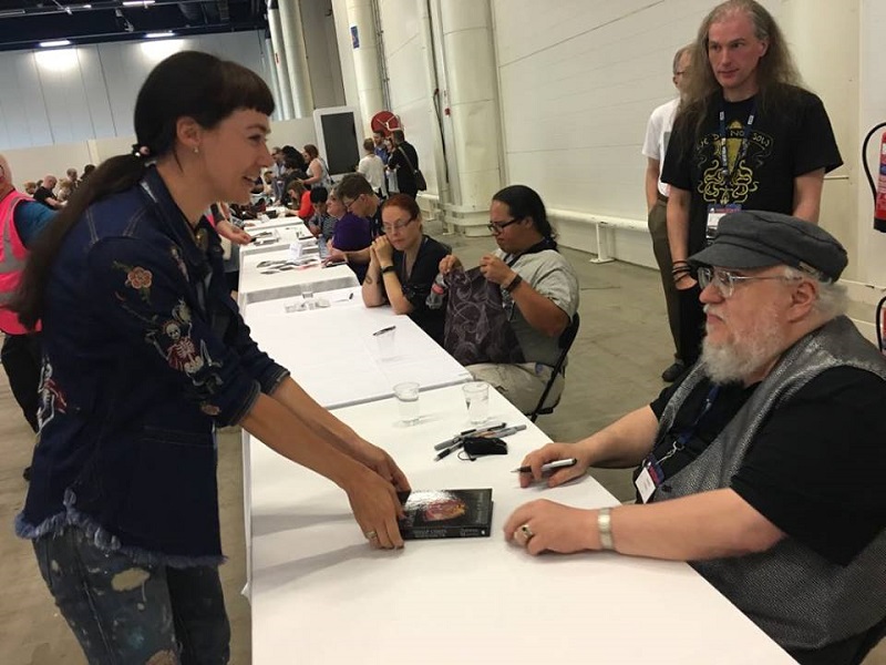 Книга: паперова чи електронна? Аудіокнига! Це найзручніший формат. Навушники у вуха і можна слухати книгу у транспорті, за кермом, на біговій доріжці. Так само за зручність ціную електронні книги. У мандрівку можна взяти одну паперову чи планшет з цілою шафою книжок. Але, кого я дурю? Насправді, я паперовий букоголік, купую паперові книжки у великій кількості. Це певний фетиш, коли хочеться засунути носа до нового видання і просто дихати фарбою, торкатися ілюстрацій чи залишати помітки на полях. А ще тільки на паперових книжках можна взяти автограф. Хоча Джорджа Мартіна я таки змусила розписатися на портреті “Матері Драконів”, книзі і, здається, якомусь постері. В мене є знайомі, які полюють за книжками з підписами авторів чи за авторами, щоб отримати жаданий розчерк. Паперова книга буде актуальна доти, доки писатимуться книжки.