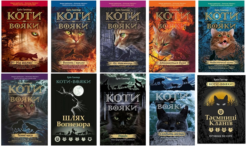 Завдяки видавництву «АССА» з 2016 року про великі пригоди, трагедії і перемоги диких лісових котів можна читати українською. Зараз на полицях книгарень вже є завершений перший цикл «Пророцтва починаються» (6 книг), спецвидання «Шлях Вогнезора», перші 2 книги циклу «Нове пророцтво» і путівник по серії «Таємниці кланів».